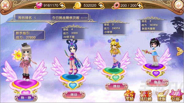 点击主界面挑战,选择【竞技场】即可打开竞技场界面,可以清晰的看到自己的排名与剩余挑战次数,可挑战玩家会显示3名在你角色的右方,若想更换对手可点击换一批。