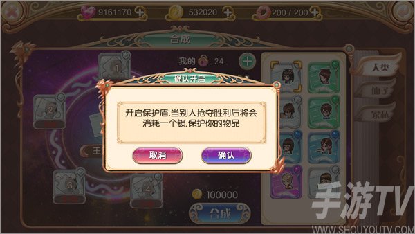 在你抢夺他人碎片的时候,别人也可以抢夺你已拥有的碎片哦!点击合成界面中间的开启保护,可以消耗保护锁来对你的碎片进行铜墙铁壁式防护。