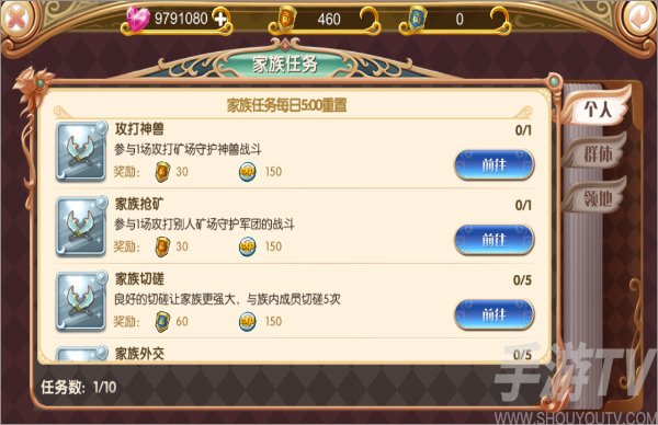 群体家族任务为整体家族成员一同完成,家族等级不同,对应需要完成的任务数量也不一样;