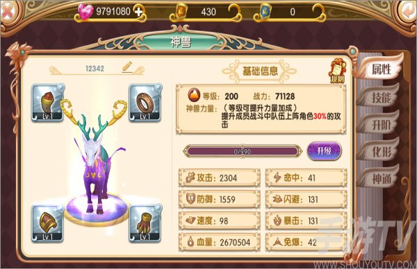 神兽基础属性:根据神兽专长,神兽的属性在升级时会有特别的成长;