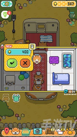 1、玩家成功进入小狗烹饪厨师游戏后,只需点击下方的绿色收银机图标,就可前往商店购买自己喜欢的家具。