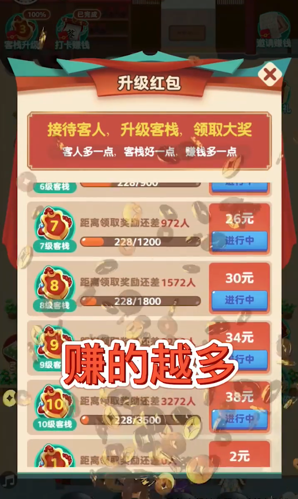 听枫客栈红包版是一款人气第一的赚钱的手机游戏,每日登录就可以领取礼包,福利多多,你只需要完成每天的任务,就可以获得小红包,画面非常清晰,无聊时候可以玩的手机赚钱游戏,喜欢的小伙伴可以来本站下载试玩吧!