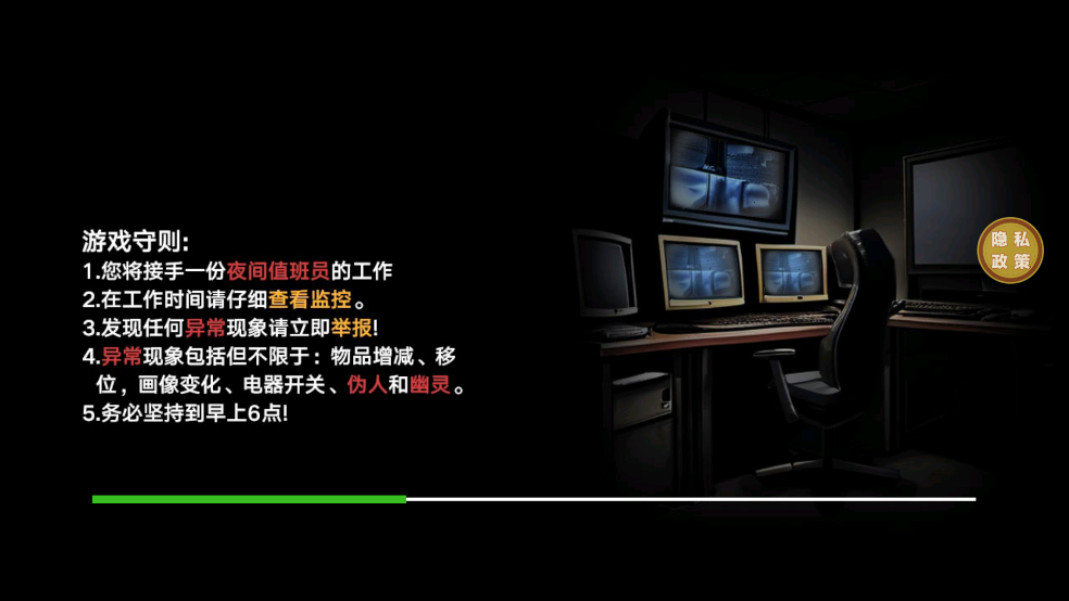 捉鬼敢死队手机版是一款以“发现异常”为核心玩法的第一人称视角恐怖冒险游戏。你将作为夜间值班的监控员,通过观察监控画面识别“伪人”或异常现象,并在发现异常后通过系统上报处理,力图在不被发现的情况下存活到早上六点。