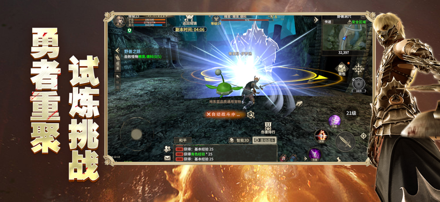 核心主线:优先推进主线任务,高额经验奖励搭配紫色装备掉落,可轻松升至25级。