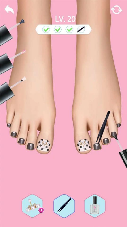 3、按照游戏指示进行足部护理,同时可以尝试使用不同的护理坐垫、按摩器具。
