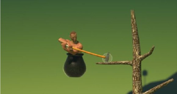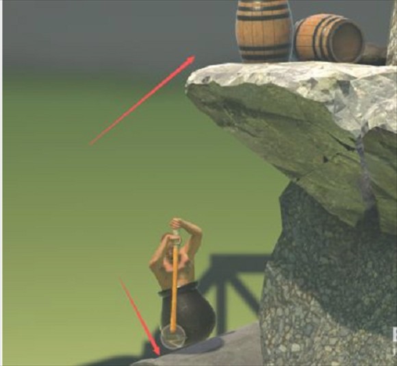 5、面对较高的障碍物,你需要先利用跳跃动作,然后再使用榔头勾住障碍物来继续前进。