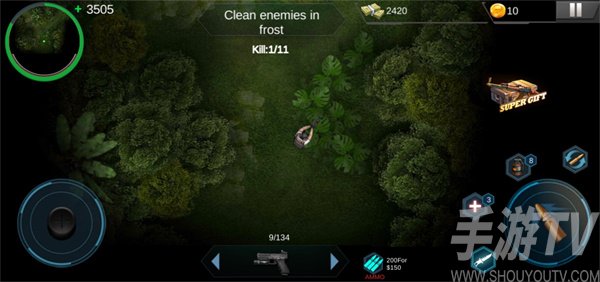3、右侧可以对敌人进行射击;