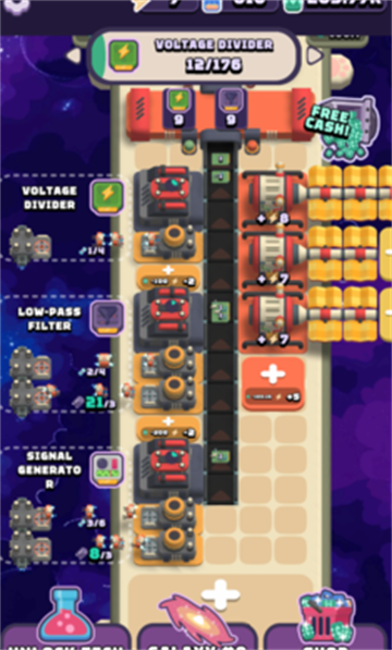 2、随着资源的积累,你可以解锁自动化产线,投入资源生产电子元件。设置合理的销售价格后,就可以挂机赚取收益了。