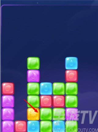 5、我们尽量先消除下方的方块,因为在下落的方块中,有组成多个同颜色的方块时,会自动消除的。