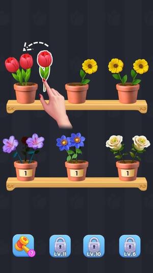 插花连连看是一款把经典连连看玩法放和花朵结合的单机休闲消除游戏,你需要通过把3朵相同的花放在同一个花瓶来把花朵一一消除,最终完成各关卡。