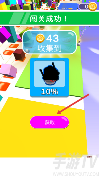 3、闯关成功后,点击【获取】按钮领取金币等奖励。