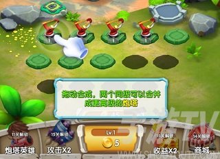 利用金币可以不断购买新的炮塔,拖动两个等级及类型相同的炮塔进行合成,便可生成更多等级的炮塔哦~