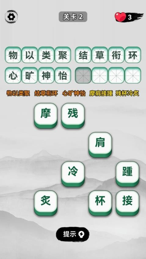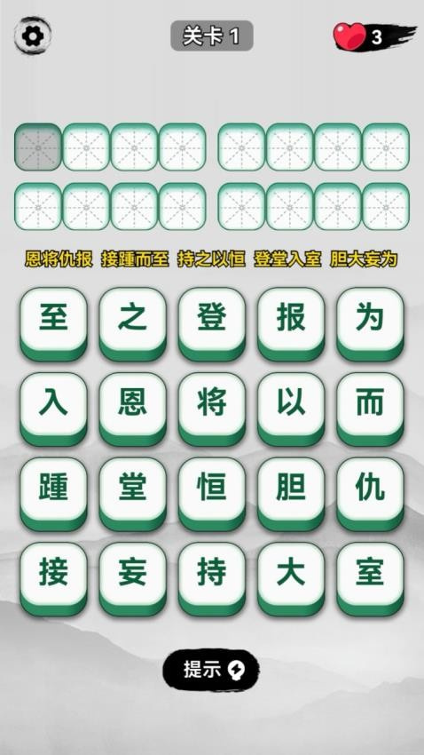 3.在关卡中你还需要注意每个汉字的位置。一旦找到合适的元素,就可以单击它。