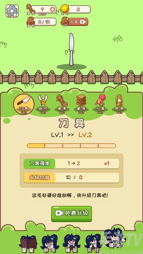 3、成功捕捉后,玩家可使用刀具来刮毛;