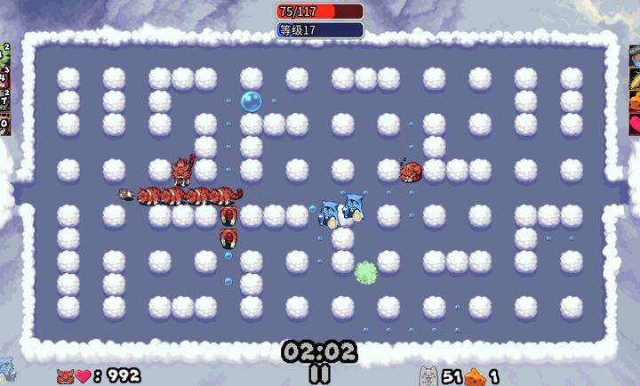 5、一边前进吃掉小球一边躲避猫族的追捕,选择更多的技能来击败更多的猫族敌人。