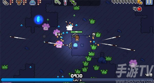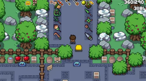 每局战斗中,玩家需击败潮水般的敌人获取金币与水果,前者用于购买武器升级,后者则能解锁40余种功能各异的道具。通过自由搭配这些物品,可构建出专属战斗流派,例如叠加攻击速度的"狂暴流",或依靠范围伤害的"清屏流"。