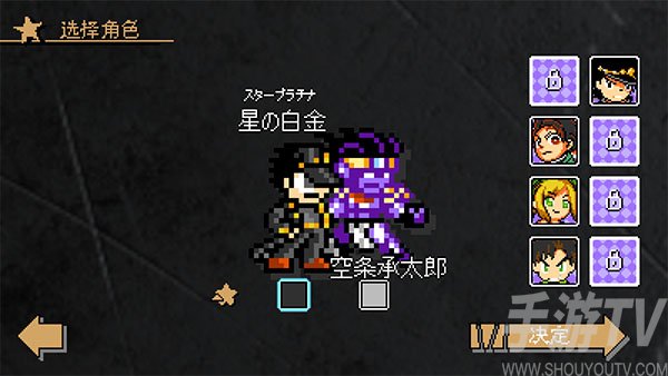jojox洛克人是一款像素风格的横版对战游戏。由B站up主孟大侠开发。在游戏中,有许多知名的动漫人气角色可以选择,比如jojo3、4、5部中的人气角色甚至是鬼灭之刃中的角色。玩家可以自由的选择自己喜欢的角色来进行闯关。游戏规矩很简单传统,需要玩家在关卡中打败相应的敌人即可闯关成功,这些敌人的灵感设定也一样出自动漫。游戏整体是Q版像素风格的画风,在充分还原人物立绘的同时也增添了一些别样的趣味。喜欢动漫、喜欢闯关游戏的玩家千万不要错过,赶紧来下载玩玩看吧!