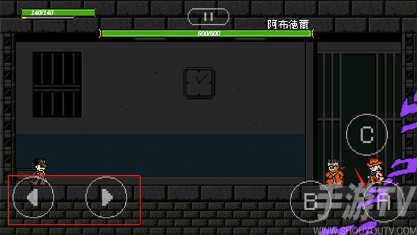 4、进入游戏后,左侧控制角色移动,右侧则为攻击按键