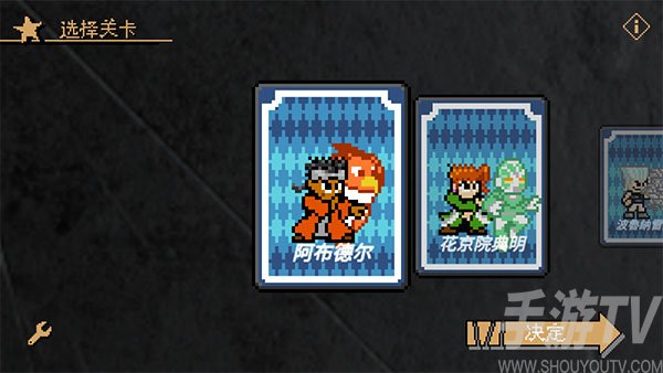 3、组队模式:两个玩家一起对战电脑,共7个关卡两胜制,玩家也可以选择电脑的模式,进行2V1或者2V2对战