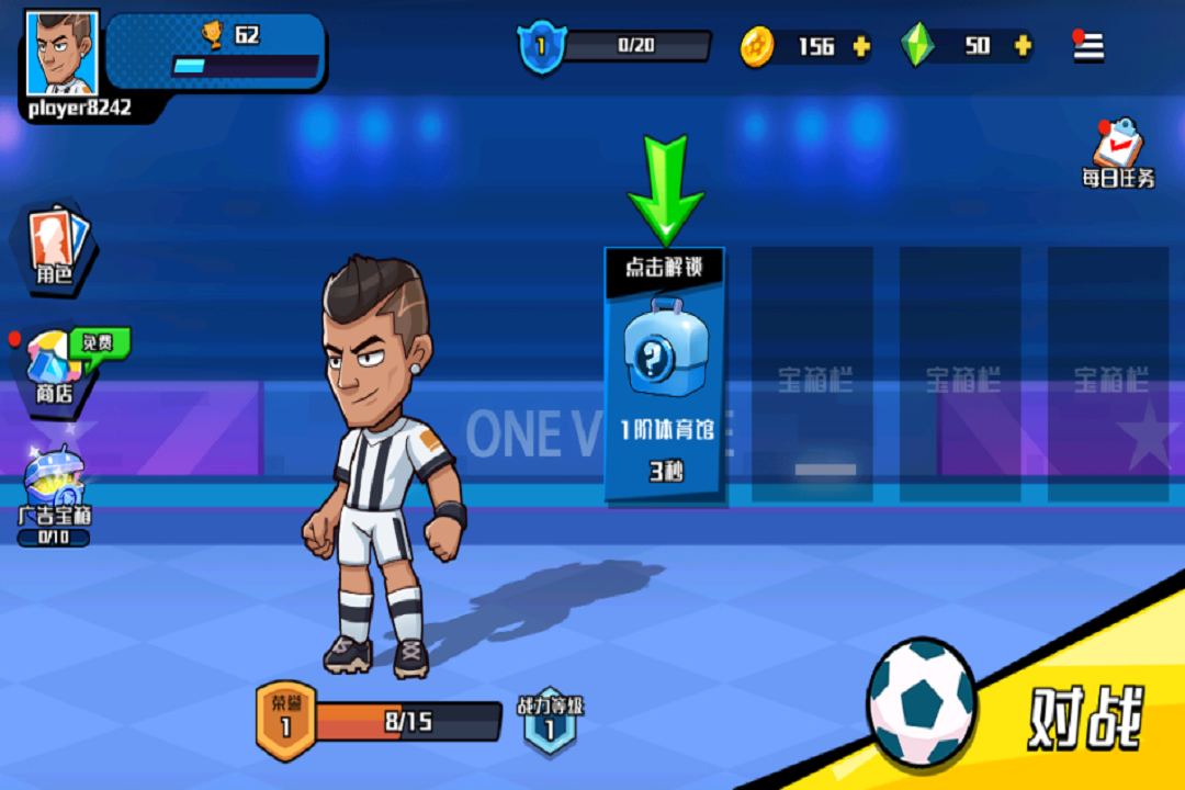 游戏内设有丰富的养成元素,你可以解锁不同外观与能力的角色,还能通过开启宝箱获取金币、稀有道具等奖励,用于强化角色战力,让你的球员在赛场上更具优势。