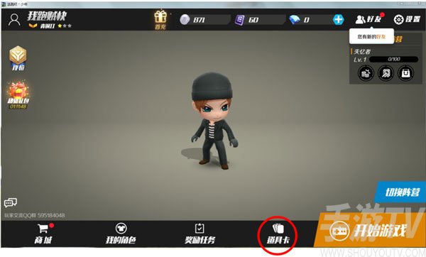 1、道具卡的选择和更换可以在两个界面操作,第一个是游戏主界面。