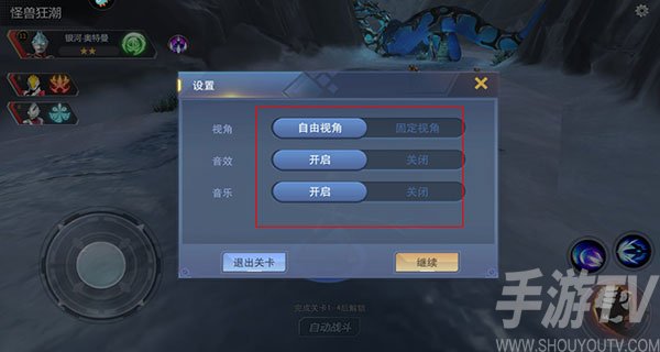 7、作战界面右上角有个设置按钮,玩家可以切换自由视角、音乐等;