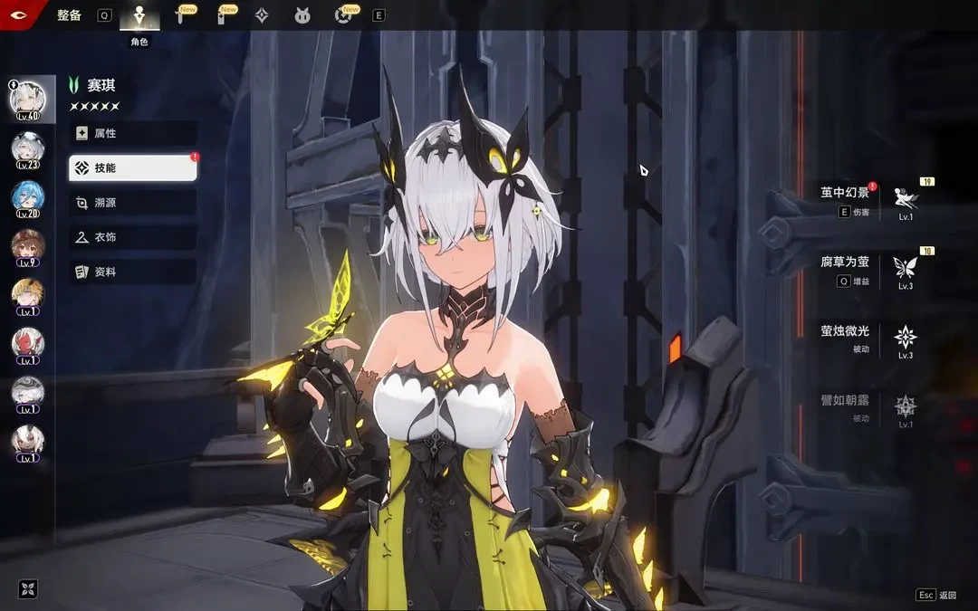 角色技能有:一个小技能、一个大招和两个被动技能。