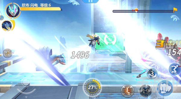 欧布·闪电形态的两个技能都是十分给力的,虽然闪电冲刺的伤害略有不足,但是配合闪电斩就可以轻松起到收割作用了,两个技能的轮流释放可以瞬间秒掉大多数的敌人!