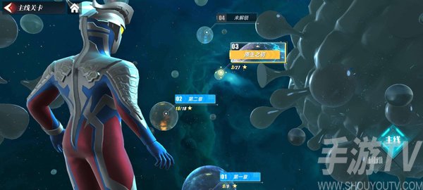 4、然后返回,点击右下方剧情,选择游戏关卡,以及要出战的奥特曼;
