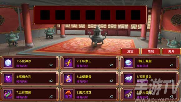 玉面首乌、高僧舍利、龙蜒麝香、五彩雪莲、织火金蟾、鲸王凝脂、鲸王凝脂