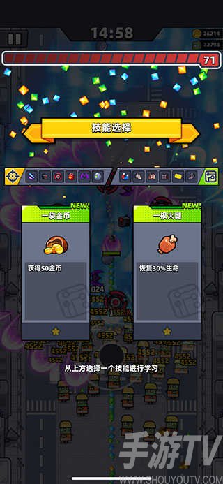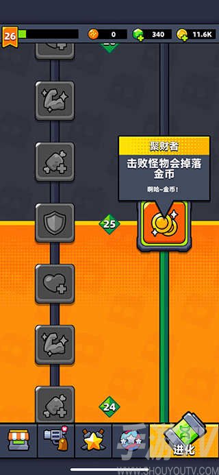 2、到第4章跑酷,优先选择金币加成、拾取范围、跑步速度。