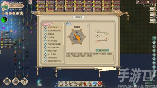(2)针对修仙就会有很多功法,功法可以在剧情探索中获取。每种功法没有高下之分主要就是针对不同属性的小人,因为功法也是对应一些东西的,这里不细说。