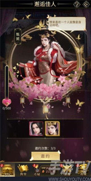 主公每天6点,12点及18点,可分别获得1次邀约佳人游玩的机会,当天次数可累计哦!