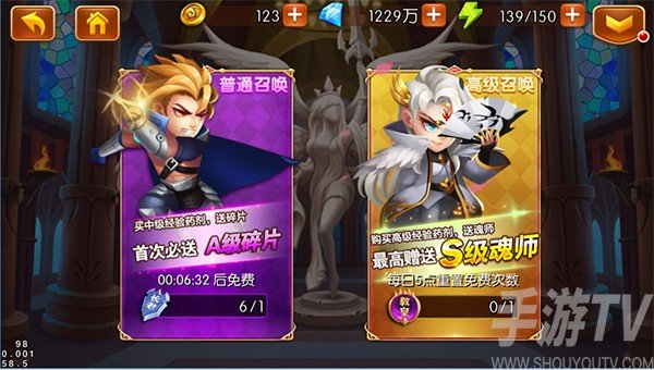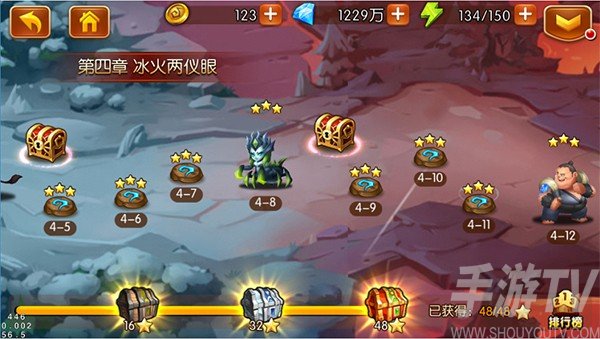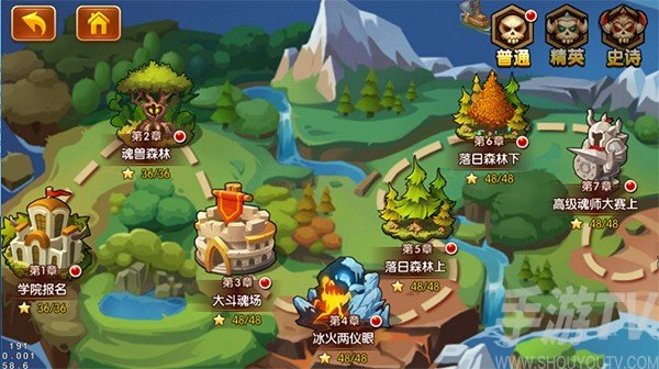 另外,精英关卡的3星条件是用时间判定的,60秒、90秒、120秒内通关分别是三星、二星,一星,不要大意了。还有史诗副本,每天只能挑战3次,奖励是珍贵的钻石和灵魂石!