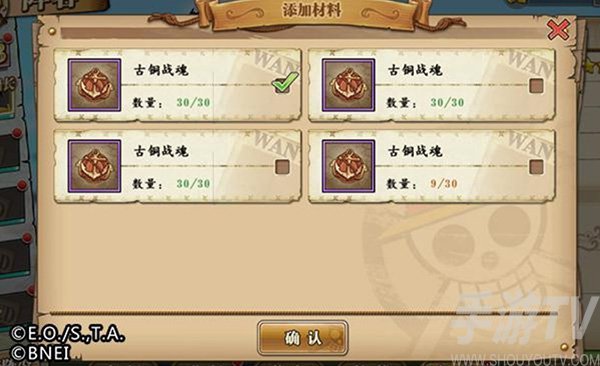 超越也是提升角色属性的重要途径之一,而超越使用的材料,就是同样的角色,或者30个角色碎片,或者30个古铜战魂!以路飞超越为例: