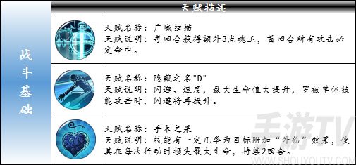 新世界罗的天赋大致可以分成两部分:心脏摘除&战斗基础。心脏,作为人体最重要的器官,“心脏摘除”必将对目标敌人造成难以弥补的伤害!这套机制简单来说,使得敌我双方两名角色产生关联,增强己方削弱敌方,在本方角色受到致命伤害时,敌方关联者同样受到致命伤害,并回复“始作俑者”新世界罗的血量并增加5魂玉。