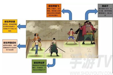 第二套阵容也是同样推荐给白胡子让出一个位置来让他当前排,这里推荐白胡子主要有两个原因:第一是关键性原因,白胡子有断技能力,虽然拿满怒的新世界奈美没办法,但是对于其他人还是起到关键性作用。新世界路飞上场后,拥有着可以媲美狮子歌歌的输出能力,正好新世界路飞的攻击方式为前排优先,索性把白胡子放到前排断新世界路飞的技能,让他放不出AOE,无法完成收割,这对战场的局势大有助益。第二个原因,白胡子震动之果天赋能让对方全体成员在两回合内命中和闪避降低,配合黑胡子,能够最大化降低对方的命中闪避,也同样具有战略作用。