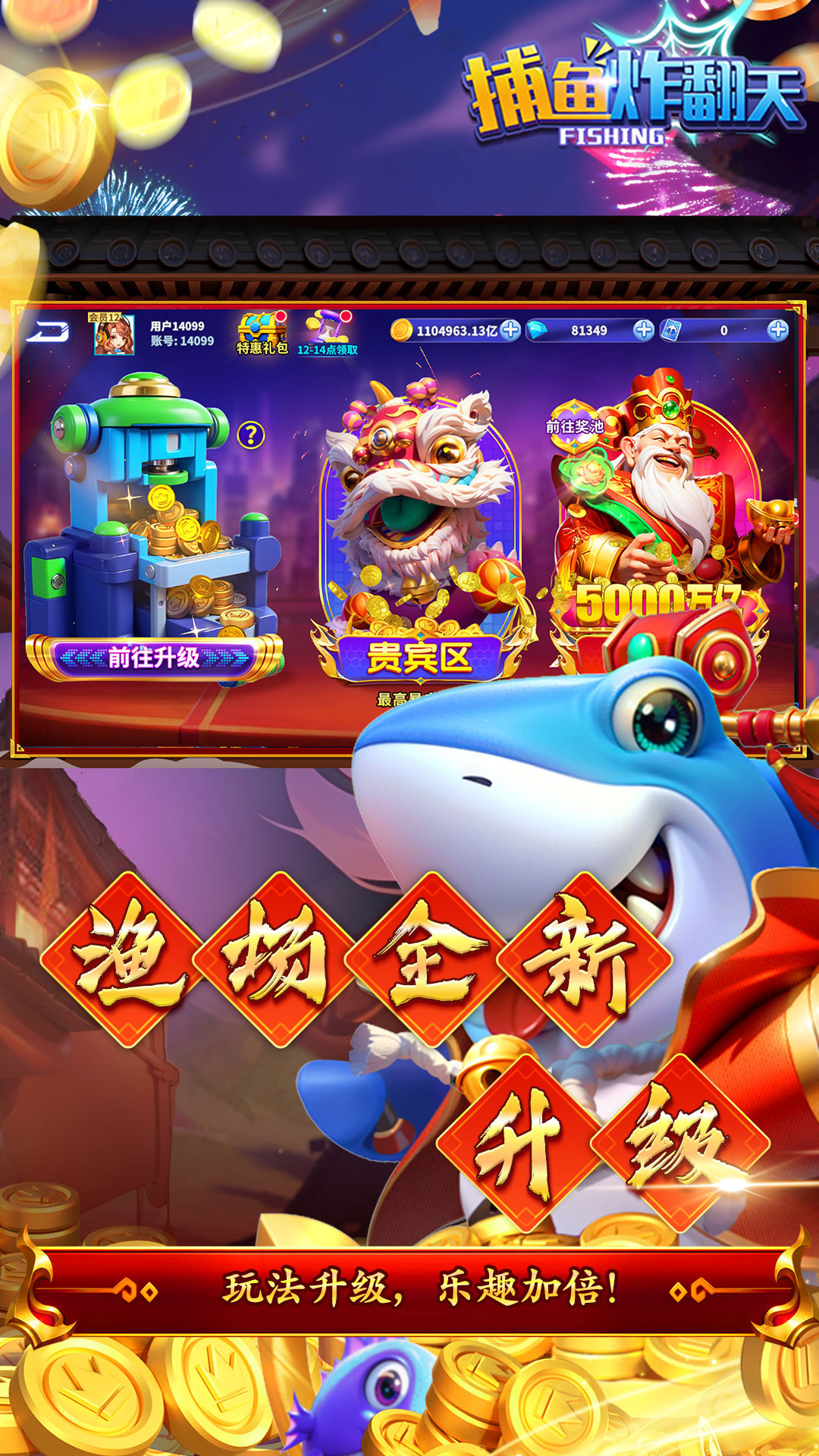 捕鱼炸翻天旧版本有着非常丰富的游戏玩法,全新3D体验的街机捕鱼手游,让你感受捕鱼来的畅爽体验,全屏爆炸瞬间秒杀鱼群,神器冲天炮炸鱼爽翻天,金币哗啦啦到碗里来,还有更多的新人福利为大家准备着!喜欢的小伙伴赶紧下载体验游玩吧。