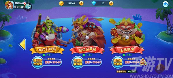 2、而每一场的模式所给的奖励却不同,并且还会受制于炮台倍数的限制,如果玩家的等级不高是无法进入到游戏当中的。