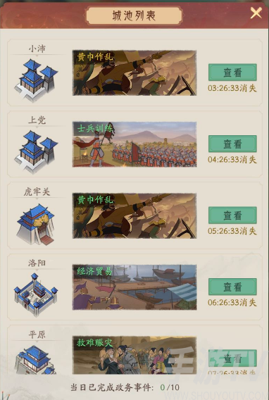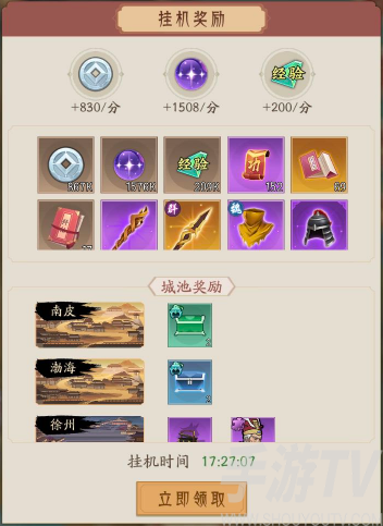 这里是各种资源的主要产出来源,给通过的城池任命太守后,就能解锁额外的城池掉落奖励。(挂机时间有上限,记得及时领取哦)