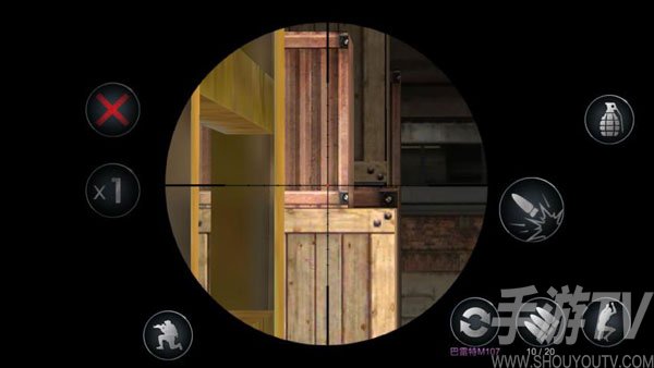 玩家在使用狙击枪时大致操作位置相同,在点击射击按钮后进入开镜模式,开镜模式下右侧会显示开镜的倍数和退出开镜模式的按钮。同时普通模式的按钮全部保存,玩家可以随心所欲的操作。