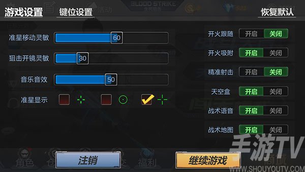点击左上角的齿轮图标可以打开设置界面。玩家可以根据自己的操作感受来调整各项灵敏度,比如准心移动快慢、狙击开镜灵敏、准星图标等。还可以开启和关闭各种效果,比如精准射击按钮、天空效果、战术语音等。