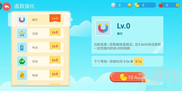 在挑战模式中,玩家在游戏中获得的金豆将用于道具的强化,而得分越高则最后结算时获得的金豆将越多。