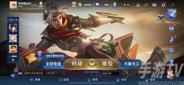 国际服主页非常简约,主要由李白、花木兰等英雄作为看板;而国服看板主推新英雄,另外由于国服强调社交,并加入了大量活动,天宫编辑器,电竞等相关元素,所以主页上相比国际服复杂许多。