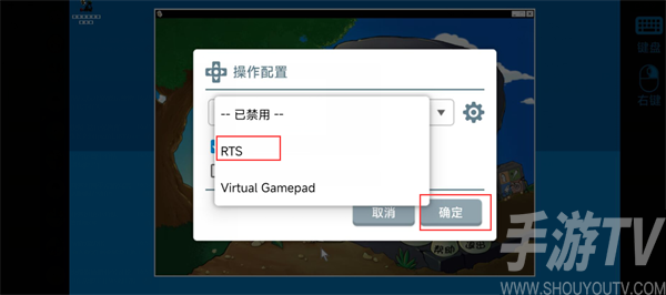 选择“RTS”,并点击确定,即可打开虚拟按键