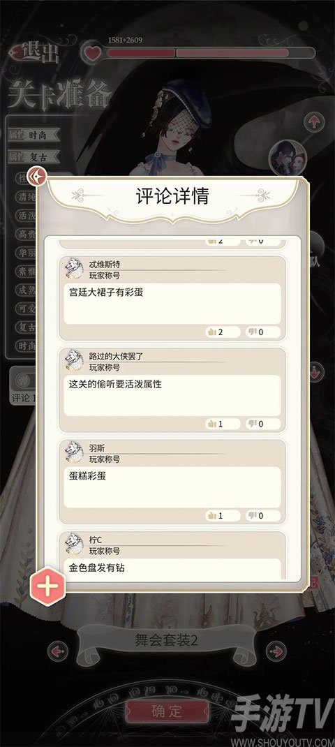 4、打开旁边的评论,找找有没有彩蛋,彩蛋需要什么衣服,换上彩蛋衣服。