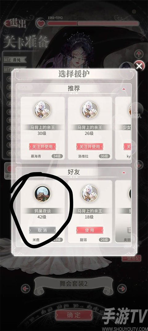 8、点选择援护,一回合把大佬的援护放进去,跳过战斗(援护只能用一次)。