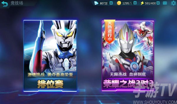 在游戏中小伙伴想要战斗只能经过竞技场才能够进行战斗,奥特曼传说之战中竞技场分为两种,分别是单人竞技场与多人竞技场。