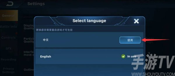 4、选择简体中文后,游戏提示需要重启,点ok重启游戏。