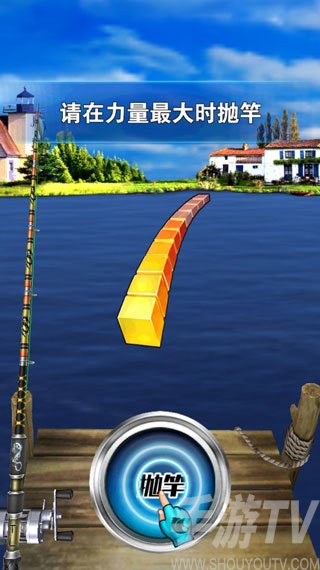 钓鱼是一门很高深的学问,在现实中如此,在游戏中也是如此,只是游戏中的钓鱼稍微简化了现实中的一些步骤。而钓鱼的第一步便是抛竿。如何抛竿?这可不是简简单单的随手一扔,在生活中,扔出的力道直接影响到你鱼竿的远近和你抛掷的方向。不过在《全民钓鱼》这款游戏中似乎简化了,抛竿这个技术活变成了反应测试,当我们按下中间的准备按键后,屏幕中间就会出现一条能量条,来回波动的能量条是你要抛竿的力量,当我们按下中间开始按钮,便抛竿成功。